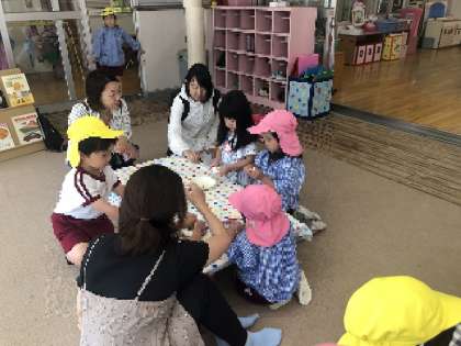 園庭のコンディションが悪かったので、テラスや砂場、色水のコーナーと限られた場所でしたが、それぞれ好きな場所で遊んでいました。
