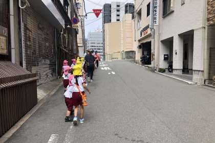空堀商店街にお出かけ(地域散歩1) 公開日 2023/06/13 更新日 2023/06/13 園児の様子 4.5歳児がペアになってさぁ出発〜 今日は幼稚園を出て左にまっすぐ進み、チョコレート屋さんを曲がりました。 しばらく歩くと、幼稚園で過ごしているときに災害が起きた時に避難する旧南高等学校が左に見えてきました。そして幼稚園に花を届けてくれる花屋さんを見て左へ・・ 空堀商店街のアーケードをくぐります。 丁度、いろいろな店が開く時間だったので、準備している姿をよくみかけました。 いいね(0)