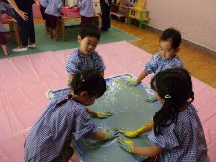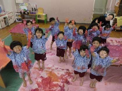 絵の具だらけ 気持ちいい〜(4歳児)