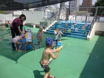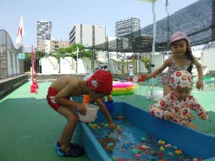 水鉄砲やスーパーボールすくい、5歳児がつくったコース・・