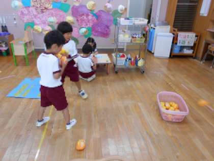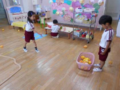 保育室にたらカゴを置いていたら・・(4歳児)