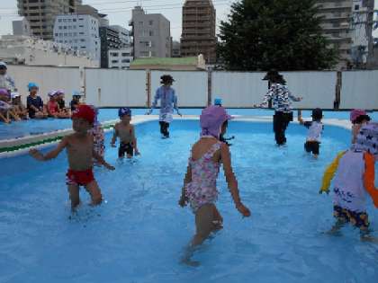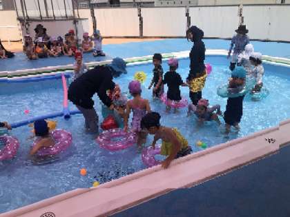 最初は5歳児。プールの入り方や上がり方など、しっかりと手本になっていました。