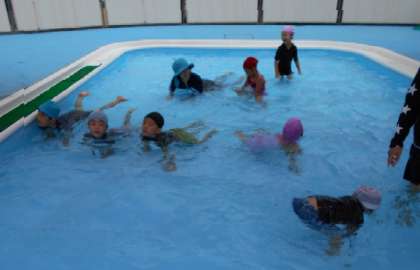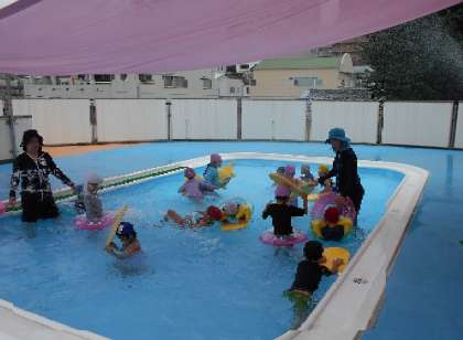 水が深くなって・・(5歳児) 公開日 2023/07/13 更新日 2023/07/13 園児の様子 今日の水深は45センチ。 満水に近づいてきましたね。 深くなってきてもワニさん歩きができるように・・ また、みんなでメリーゴーランドで。 お客さんと店屋さんになり、お客さんは水に浮いた状態で。店屋さんはお客さんをしっかり手を放さずにグルグルまわります。 するとお客さんの体が・・ 足を前に出して浮き出しましたよ。 プールに入れるのはあと1回。 最後満水で遊ぼうね〜 いいね(0)