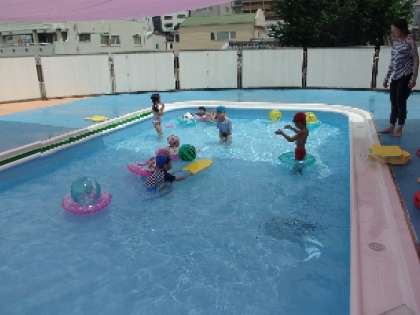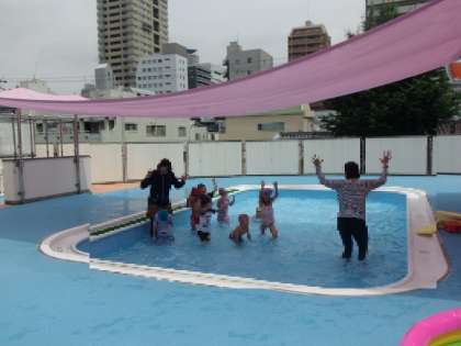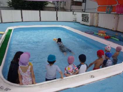 4歳児も5歳児と同様にプールを縦方向に使うようになって活動も変わってきました。