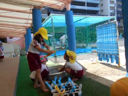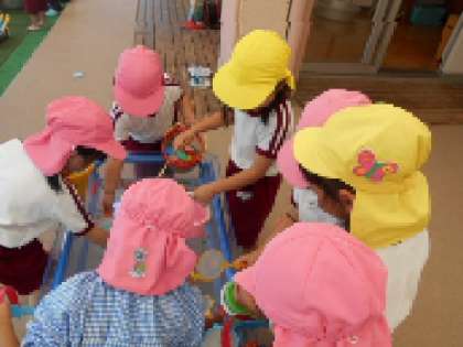 水を触ってたら涼しいな・・ 公開日 2023/08/01 更新日 2023/08/01 園児の様子 今日は朝から暑さを感じていました。 園庭に行かず、テラスでスーパーボールすくいや水鉄砲をして遊びました。 水がかかっても気持ちよく、中にはジョーロや水鉄砲で自分にかけている子どもももいました。 午後からは2階プレイルームで気持ちよく過ごしました。 いいね(0)