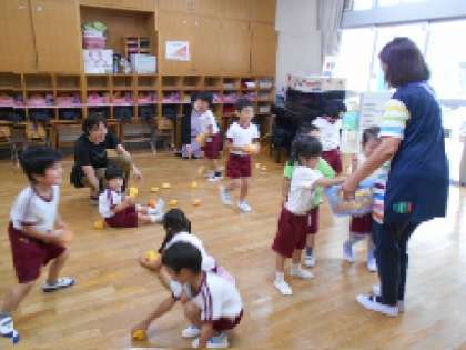 4歳児の保育室では1学期から遊んでいる流れ星ゲームを楽しんでいました。