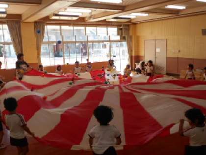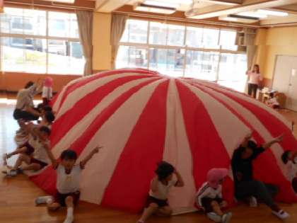 運動会後、5歳児が4歳児のために、バルーンの振り付けを考えてくれてました。
