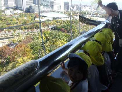 天守閣に登ったよ! 5歳児(大阪城公園2) 公開日 2023/11/10 更新日 2023/11/10 園児の様子 天守閣からの眺めは格別! 下にいた4歳児を見つけて、手を振りました。 また、資料展示も真剣な眼差しで見入っていました。 昼食後、ドングリや紅葉したいろいろな葉を見つけたり・・ 秋を満喫していました。 【11月7日】 いいね(0)