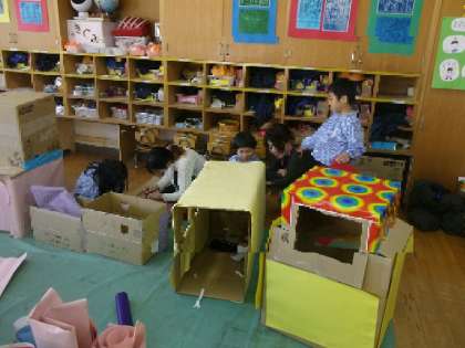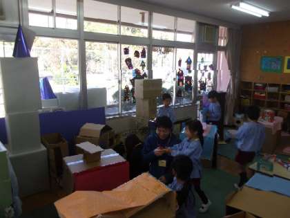 今、5歳児保育室は大きな作品つくりの真っ最中。