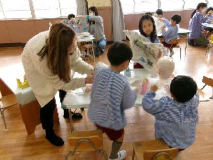 保育参加 最終日 公開日 2023/11/27 更新日 2023/11/27 園児の様子 魔法使い人形をつくっているところをおうち先生に参加していただきました。 顔の大きさは?髪や服はどんな素材を使うのか などなど、それぞれの考え、選び、工夫してつくっていました。 おうち先生も大奮闘。 その間でもつくる過程を見ていただけたかな。 完成した魔法使い人形、楽しみにしていてください。 【11月24日】 いいね(0)
