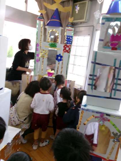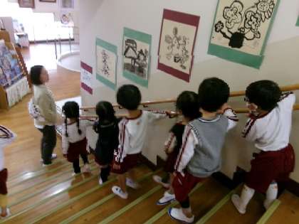 保育室やプレイルーム、階段、廊下などに子どもたちの作品が、沢山飾られてきました。