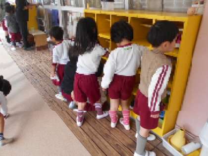 5歳児は作品展に気持ちよくお家の人を迎えられるように、みんなで拭き掃除もしていました。
