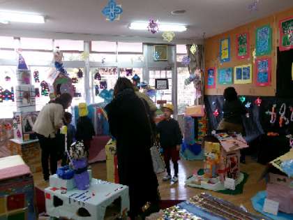 子どもたちの絵や作品が キラキラ輝いているね 公開日 2023/12/03 更新日 2023/12/03 園児の様子 今日は2部制に分かれてお家の人に絵や作品を見ていただきました。 どれもが、子どもたちの思いが沢山詰まっているものばかり・・ 「あのね。ここはね・・」自分なりの言葉でお家の人に話をしていました。 いいね(0)