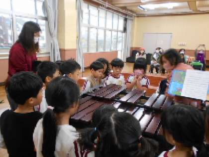 演奏会終了後、実際にマリンバを近くで見ると、楽器の大きさに驚いていました。