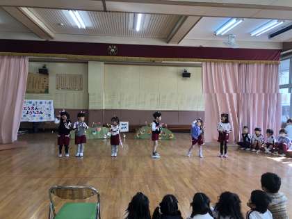 13びきのねこたち お出かけ大好き (4歳児) 公開日 2024/01/30 更新日 2024/01/30 園児の様子 みんなねこになりきっていつも遊んでいます。 今日は5歳児のお兄さんお姉さんにねこを見てもらい、自分たちでなりきって遊ぶだけでなく、楽しく遊ぶねこを見てもらう嬉しさも感じてきているのでしょう。 とても張り切っていました。 【1月29日】 いいね(0)
