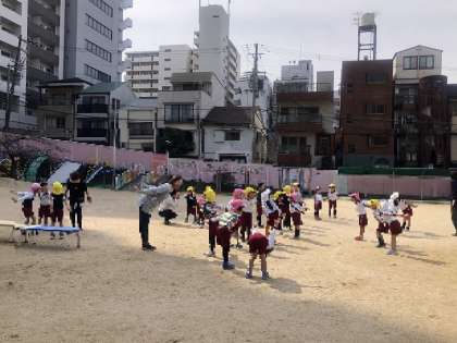 4,5歳児交えてドッジボールをしたり、5歳児からのリクエストにこたえての体操やダンスをしたり・・