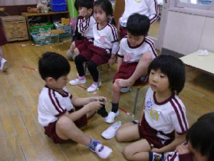 5歳児が、上靴の置き方やなにを脱いでどこに置くのか、