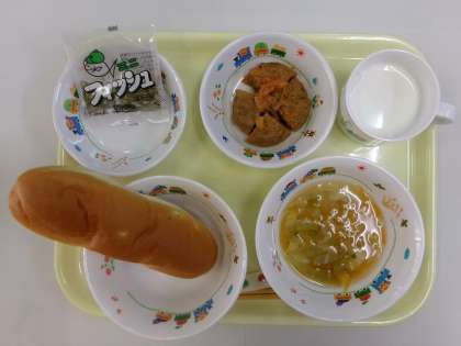 今日のメニュー (4月22日) 公開日 2024/04/22 更新日 2024/04/22 今日の給食 今日のメニューは おいもパン 煮込みハンバーグ 野菜スープ ミニフィッシュ 牛乳 ハンバーグ ボリュームがありました ミニフィッシュ 小さくて固かったけど みんなしっかり噛んで食べていました 噛むこと 大事です いいね(0)
