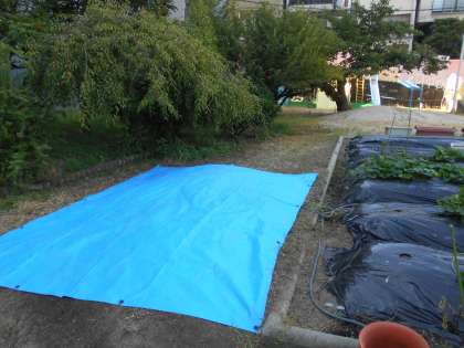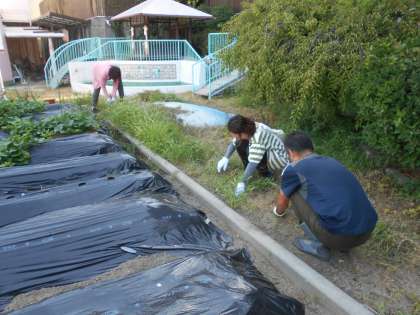 朝の影があるうちに今日はここをみんなで草抜きをしよう!