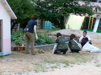 園庭から先生の爆笑も聞こえ、苦しい作業も楽しそうです!!