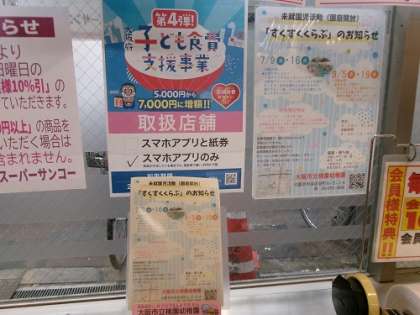 サンコースーパーに、これまでベルマークの回収のご協力をいただき、幼稚園の回収箱を置かせていただいていました。