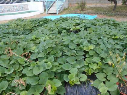 園庭のサツマイモがグングン葉を伸ばし、元気に育っています。