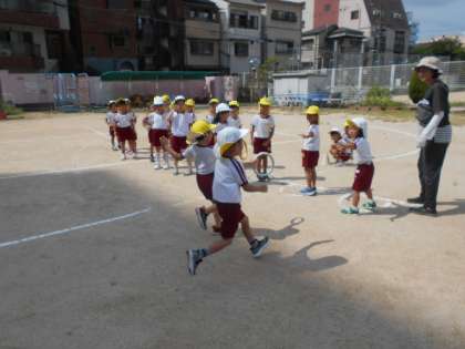 リレーは暑かったので1回戦と決め、みんなでしました。また、ルールやチーム分けなど、みんなで考えようね。
