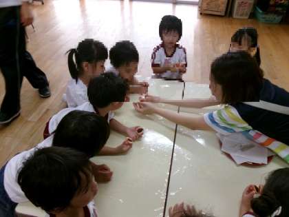 子どもたちは先生たちの反応を見てとても残念そうでしたが、切って、桃の香りを楽しんだ子どもたちでした。