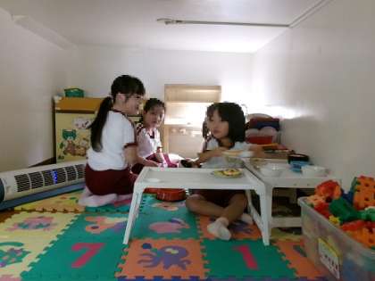 「こどもパーク」では、朝から子どもたちがままごとをしていました。
