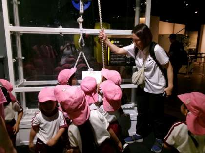 もも組(4歳児)も不思議を体験していました。 先生や友達と一緒に思いっきり楽しんでいました。
