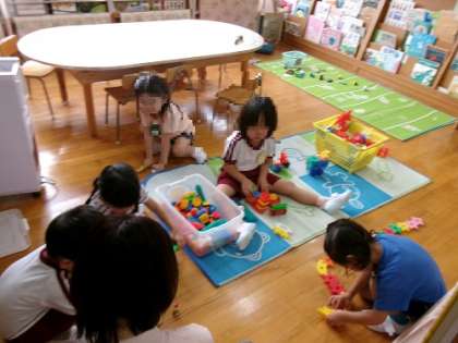朝、登園してお家の方ともスムーズに離れて活動し始めた、めばえくらぶの子どもたちです。
