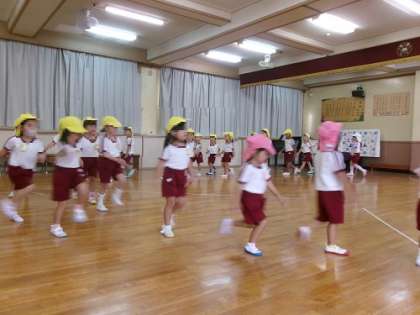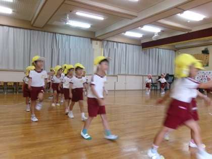 初めての運動会を経験する4歳児は、一生懸命に、また、運動会を昨年度に経験している5歳児は、堂々とかっこよく歩けたら素敵ですが、まだまだ始まったばかりですので、楽しく参加しています。