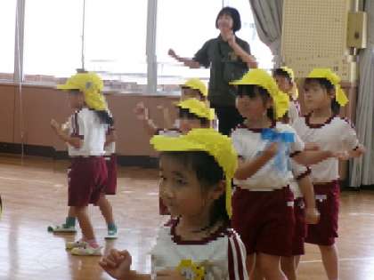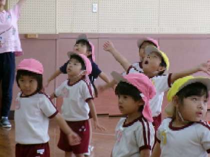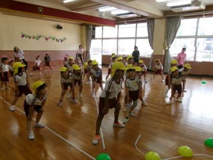体操も始めたばかりですが、先生たちの方を向いて一生懸命取り組んでいます。