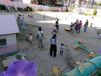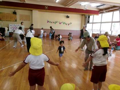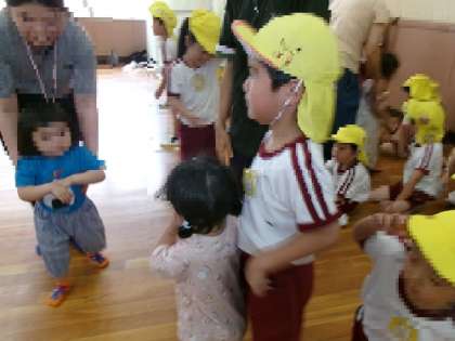 園庭で自由に遊んだあと、プレイルームでかけっこをしました。