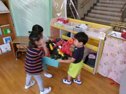 めばえくらぶ1 公開日 2025/09/24 更新日 2025/09/24 園児のようす めばえくらぶが始まってもうすぐ一か月が経とうとしています。 朝の挨拶をみんなでしてみよう! 椅子に座って、名前を呼ばれたらお返事もしました。 同じ遊びをする中で、少しずつかかわりがうまれ、会話もうまれ、友達に親しみをもち始めています。 自分たちでお片付けもできるよ! いいね(0)
