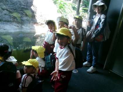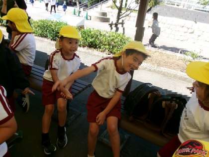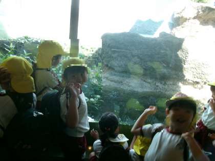 おにぎりを食べ終わったときの様子と、ワニを見に行っている様子です。。