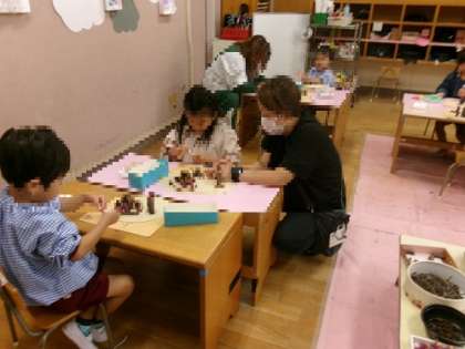 保育参加(4歳児) 公開日 2025/11/17 更新日 2025/11/17 園児のようす 2学期の保育参加がありました。 4歳児も、5歳児も保護者の方が来てくださり、一緒に様々な体験をしていただきます。 つくって遊ぶ4歳児の活動では、自然物でつくって遊んでいました。 いいね(0)