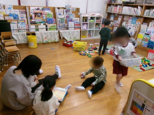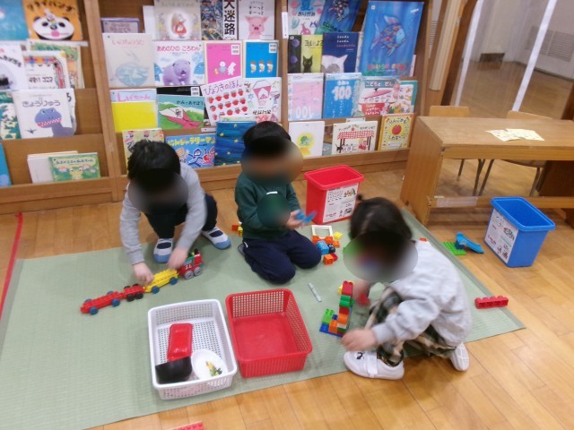 「めばえくらぶ」の子どもたちは、今日も元気に過ごしていました。朝、登園してきてすぐに、本を読んだり、ブロックで遊んだり過ごしました。