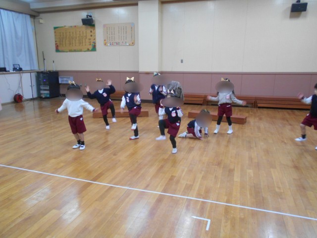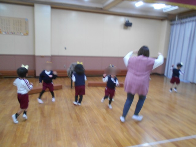 雪の世界のおはなしですが、表現したりダンスをしたりしていると体がポカポカ温かくなって「先生、楽しかった」「明日もしたい」と言って、張り切っているもも組です。