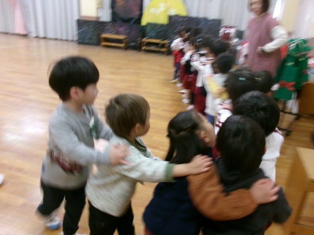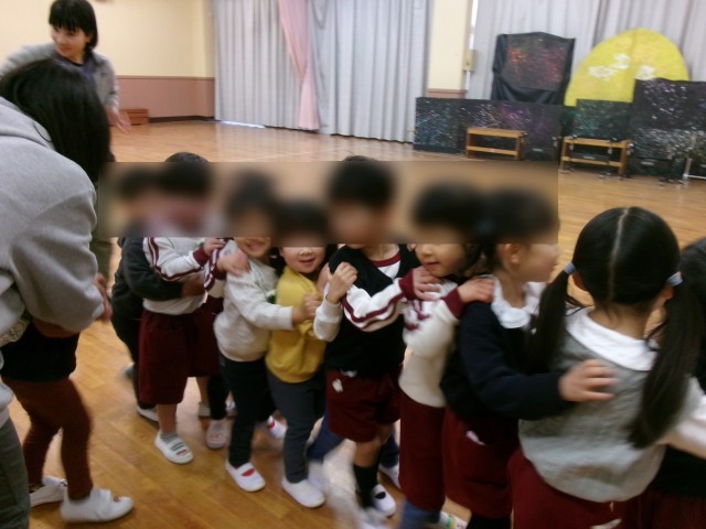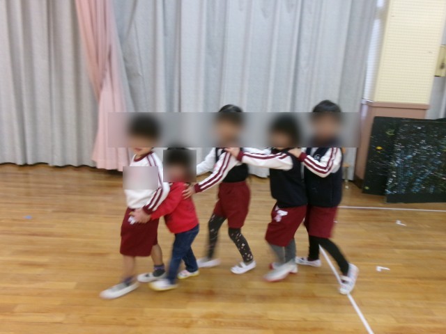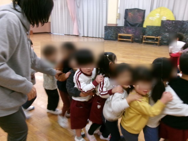 未就園児の子どもたちを見送ったあと、みんなで電車になって帰っています。