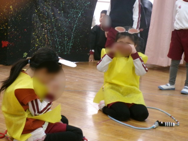 しっかり立つ姿、元気に歌をうたったり、泣いている表現をしたり、楽しそうな劇になってきています。