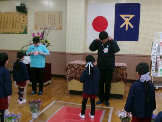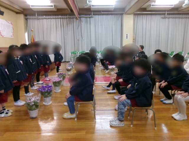 リハーサルが最後だったので、バイオリニストの方とピアニストの方にお礼をお渡しする子どもたち。