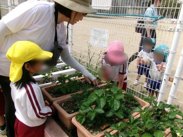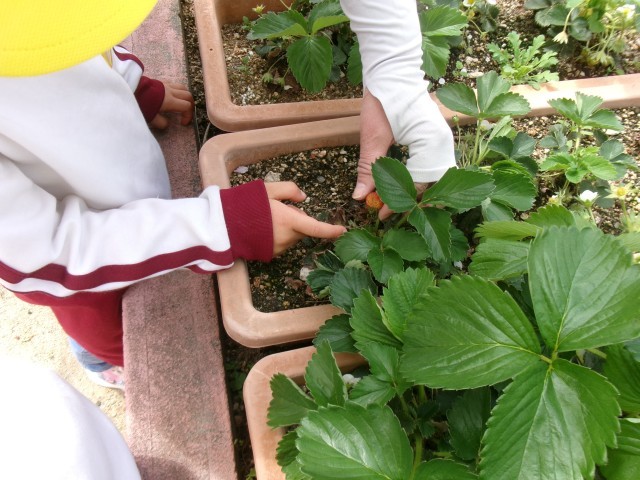 イチゴに気付いた子どもたちが、
