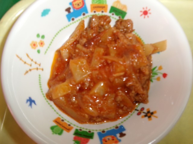 ミートグラタンもとても人気でした。モリモリ食べていました。