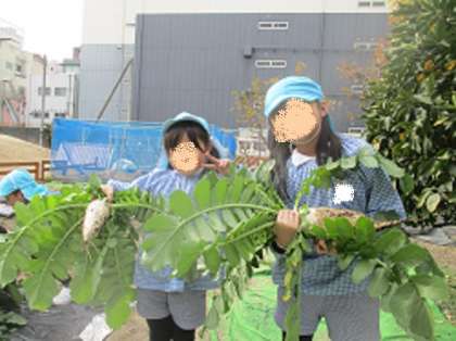 すみれ組の子どもたちが収穫を楽しみました。