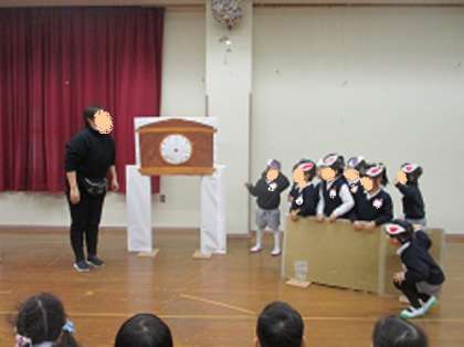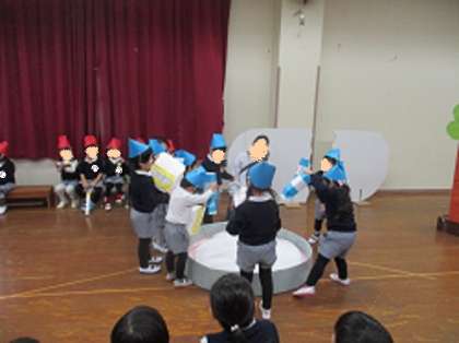 それぞれが遊んでいる劇遊びの見せ合いっこをしました。