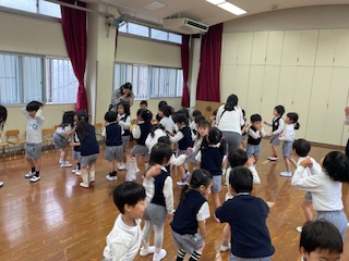 その後は、みんなで「ダンゴムシ体操」をして遊び、みんなが楽しんでいる様子を見て、きっと幼稚園も喜んでくれていたことでしょう♪
