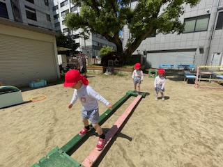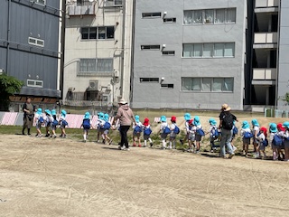 ばら組(3歳児)にとっては、初めてのグラウンド!!