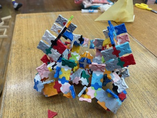 指先を使ってつくりながら、図形のイメージをふくらませ考えている姿が見られました。