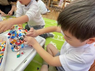 1ピース1ピースをくっつけて、またくっつけて…と、何日も何日もかけてつくっているすみれ組さん。